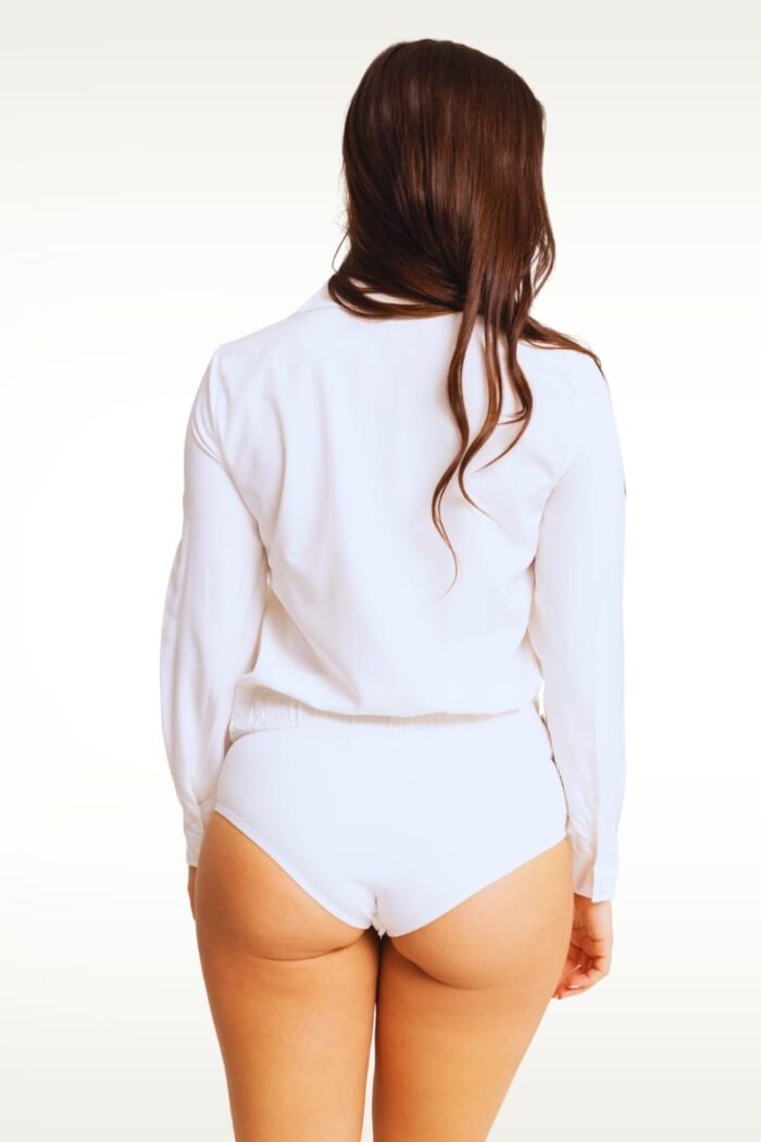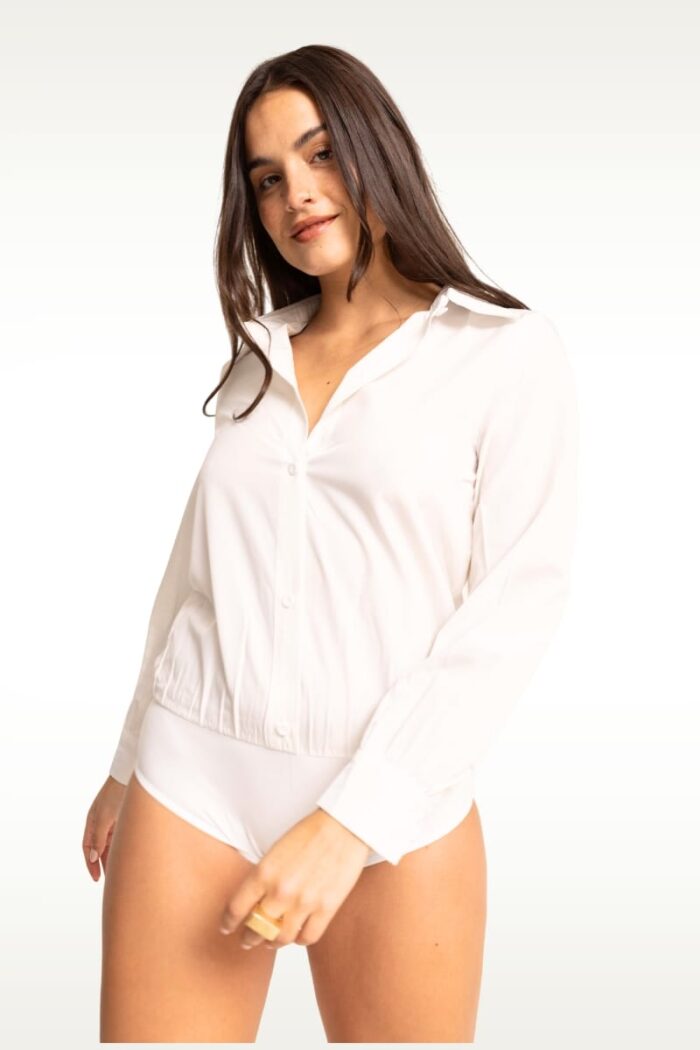 Elegancia y versatilidad en una sola prenda. Nuestro Body Camisa Casual de Manga Larga Elegante es la combinación perfecta entre el estilo sofisticado de una camisa clásica y la comodidad de un body. Diseñado para realzar tu silueta, este body se ajusta perfectamente al cuerpo sin perder la soltura y caída natural de la tela.