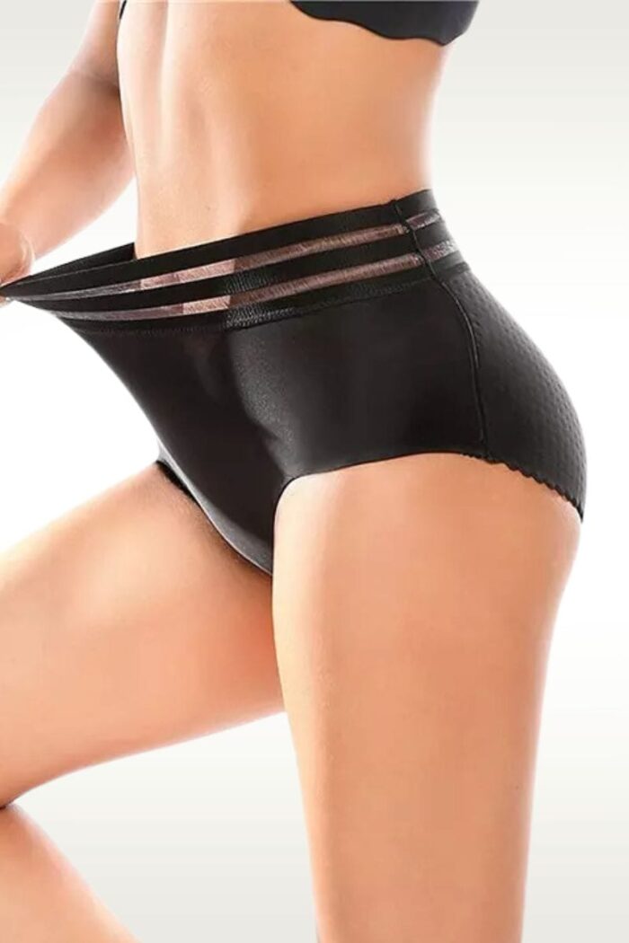 Esta bombacha está diseñada para realzar tus glúteos de forma natural y cómoda. El relleno proporciona un efecto push-up que aumenta el volumen y la forma de tus glúteos, mientras que el corte alto controla el abdomen bajo y define la cintura.