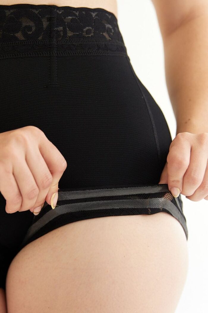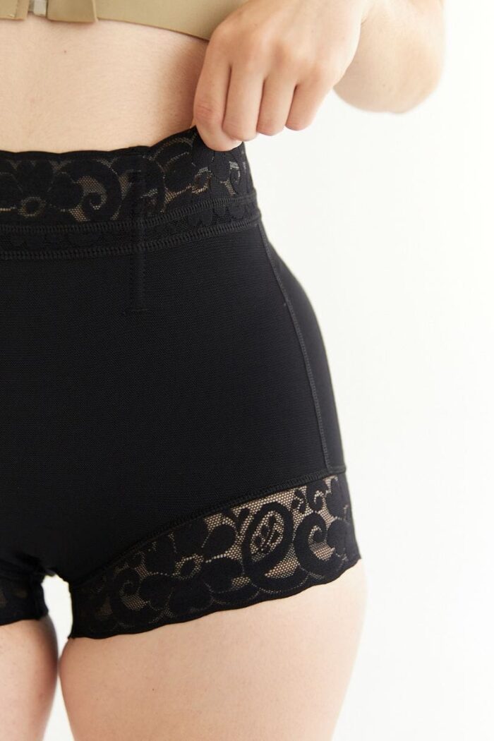- Detalle de Encaje: Acabados con delicado encaje siliconado en la cintura y las piernas para un toque sofisticado.