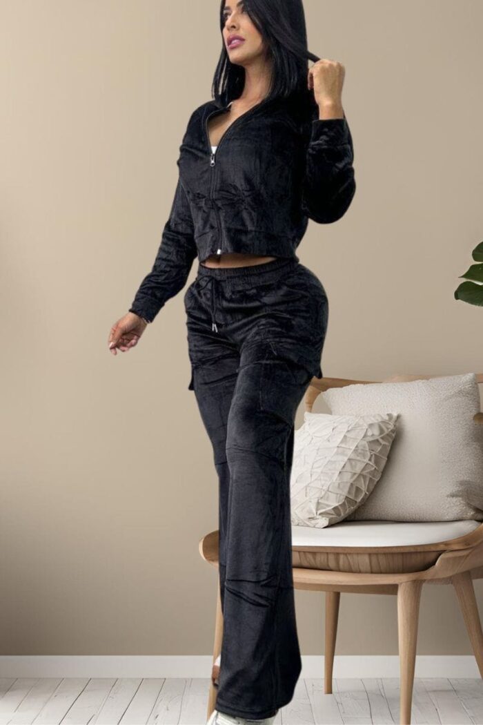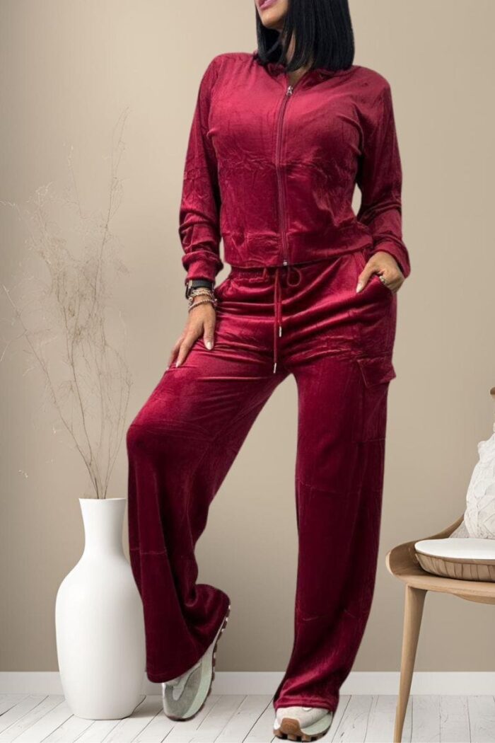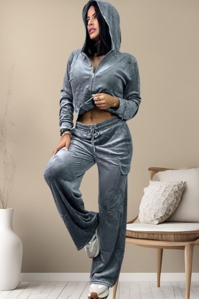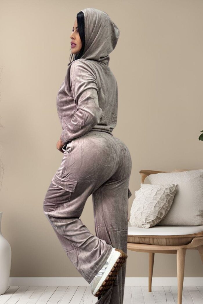 Descubre la combinación perfecta de confort, abrigo ligero y un toque moderno con nuestro Conjunto Deportivo de Plush con Pantalón Cargo y Campera de Cris & Cris.