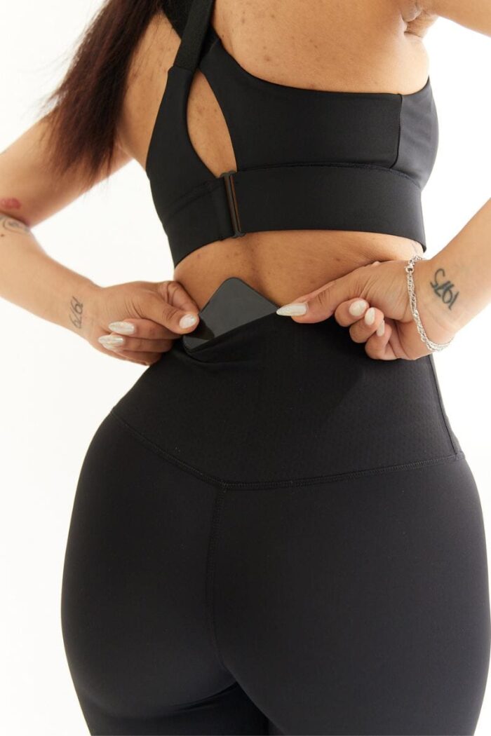 - Práctico bolsillo trasero: Diseñado para llevar tu teléfono o accesorios pequeños de manera seguraa, permitiéndote entrenar sin preocupaciones.