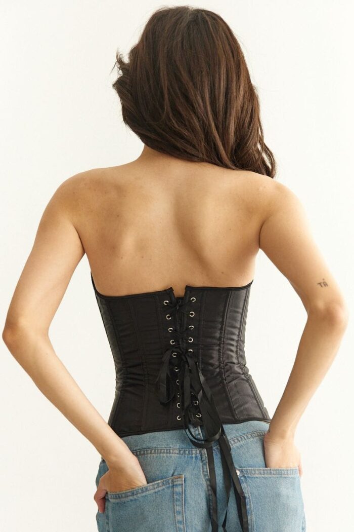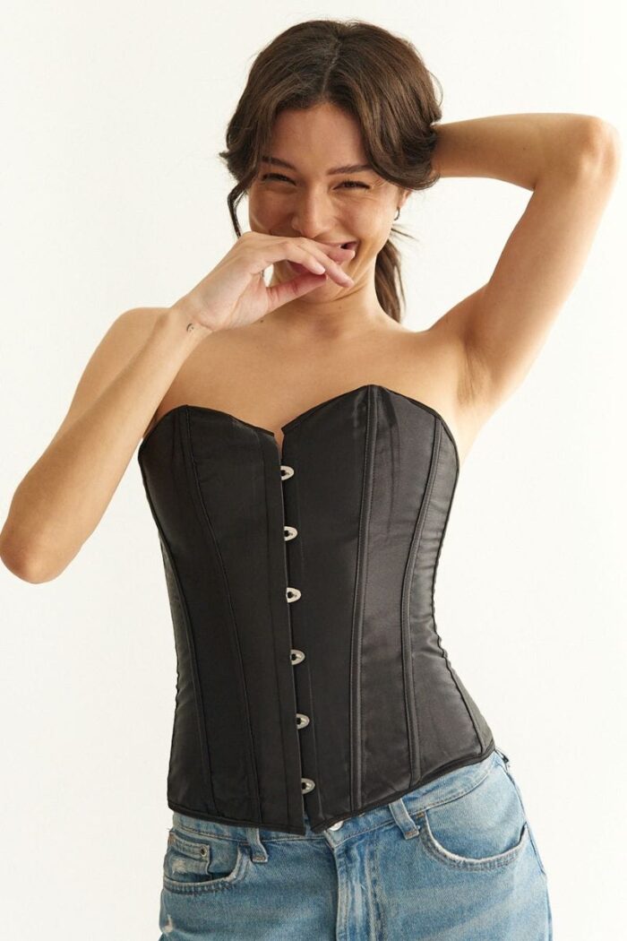 Inspirado en la sofisticación de la época victoriana, este corset overbust (que cubre el busto) está diseñado no solo para embellecer, sino también para modelar eficazmente tu figura. Su construcción robusta con 14 ballenas de acero flexibles ofrece un soporte firme para la espalda, ayudando a mejorar la postura, y permite una reducción visible de la cintura al ajustarlo. El tejido de satén de alta calidad le da un acabado lujoso y suave al tacto, ideal para ocasiones especiales o para sentirte poderosa.