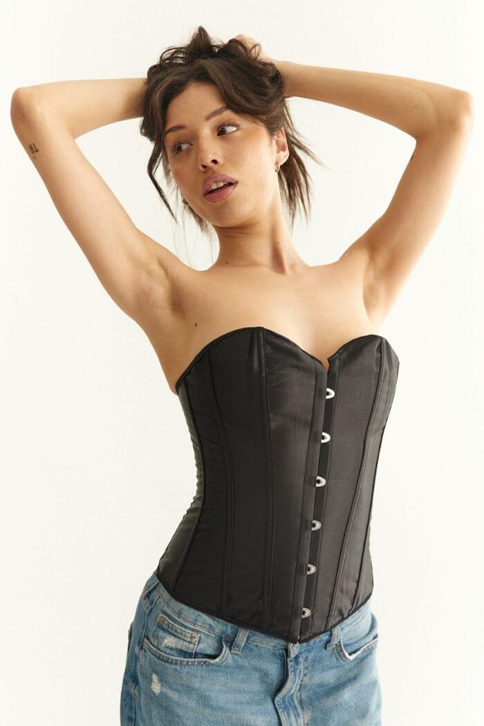 - Realza y sostiene el busto gracias a su diseño overbust.