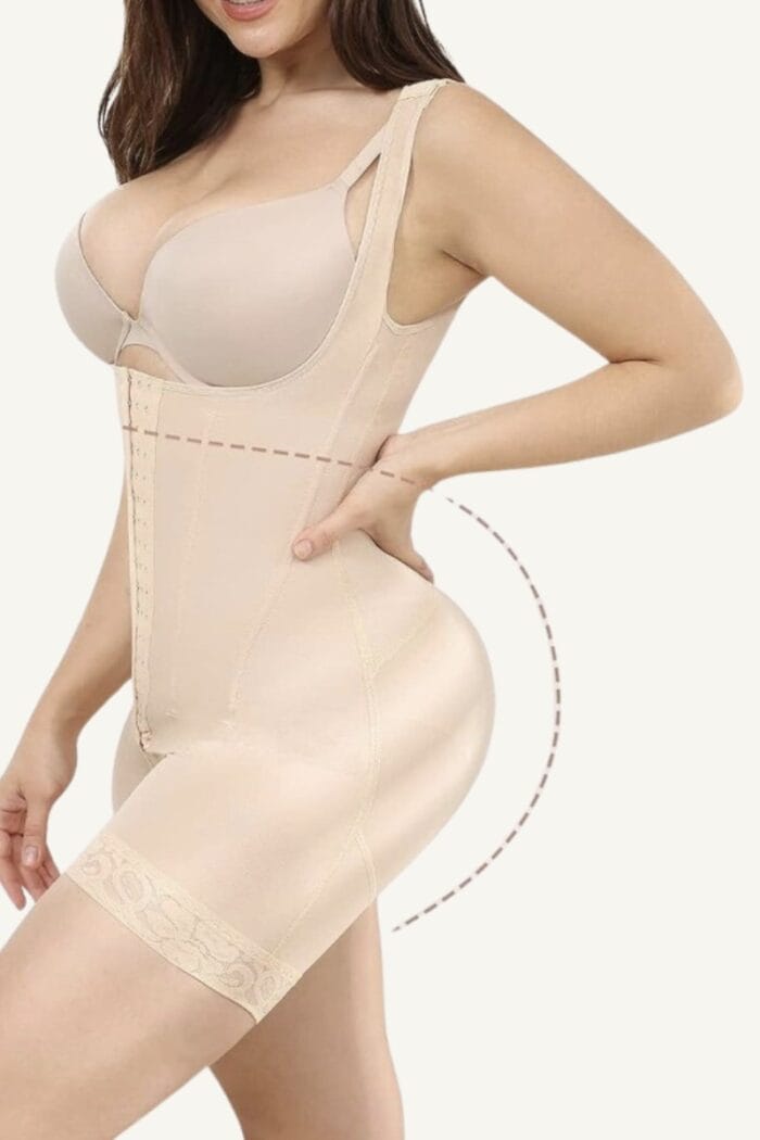 - Piernas con terminación en encaje y borde de silicona antideslizante, que evita que la faja se suba o se arrolle.