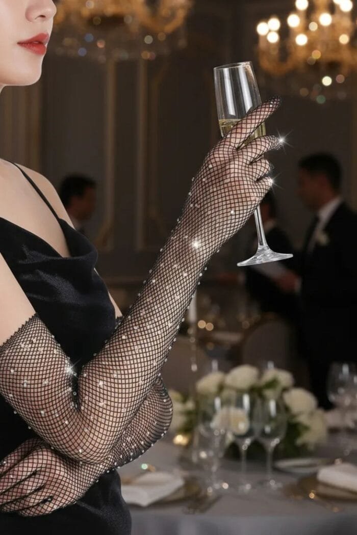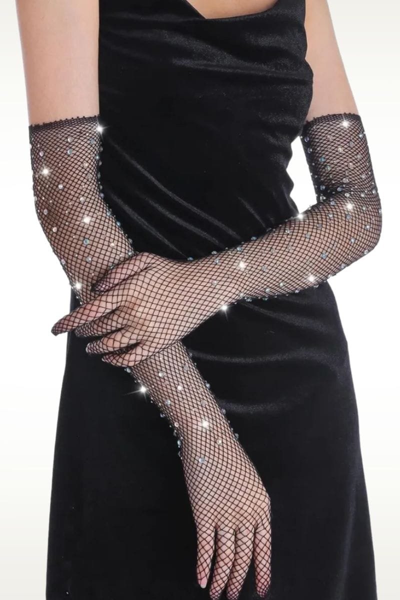 Guantes de red con brillos strass largos