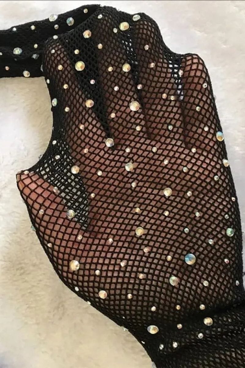 • 1 Par de Guantes de red largos hasta el codo con strass/brillos