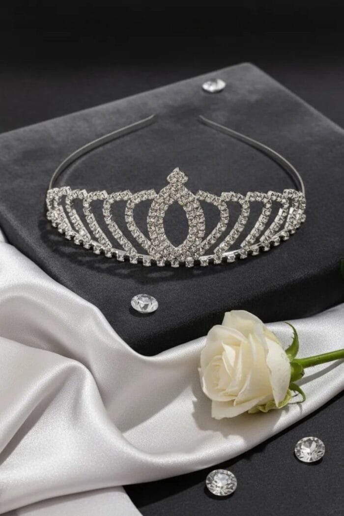 Diseñada especialmente pensando en quinceañeras en Uruguay, esta tiara estilo corona es el accesorio perfecto para completar tu look de princesa y deslumbrar en tu gran noche. Sus brillantes capturan la luz, añadiendo un toque de magia y elegancia.