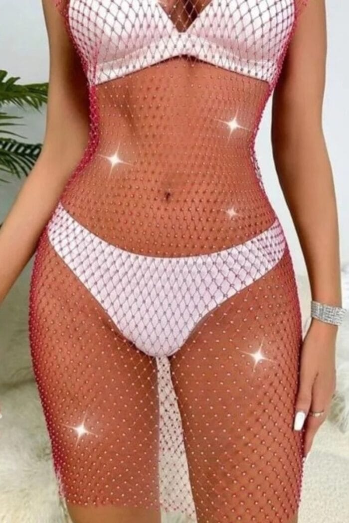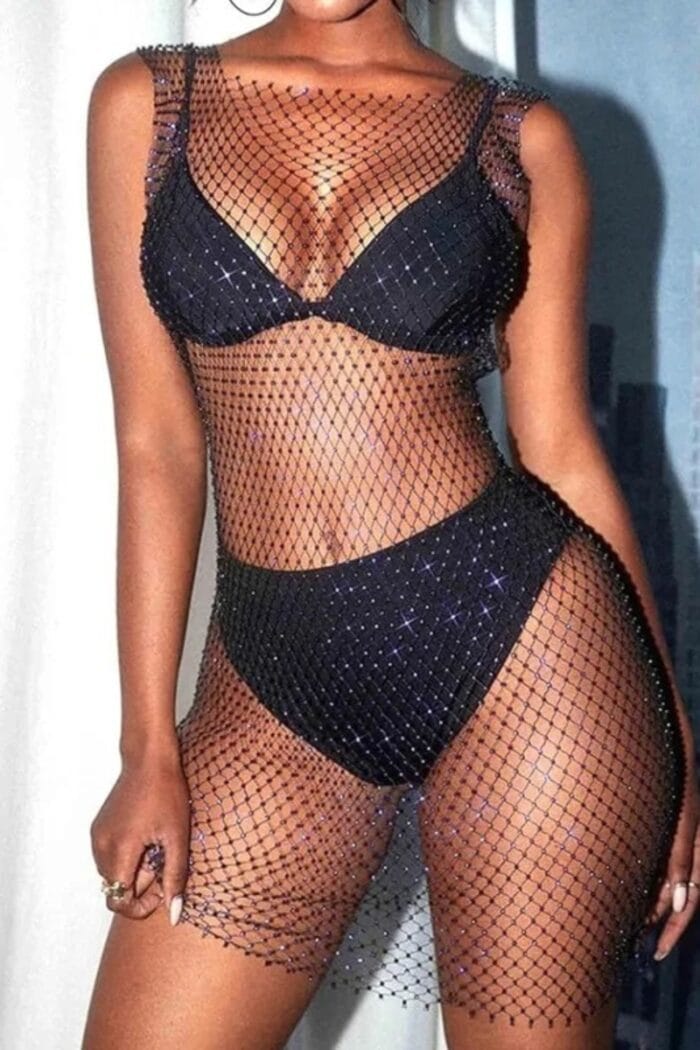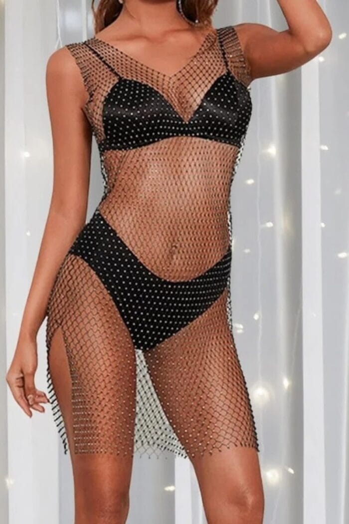 El vestido transparente con malla y adornado brillantes una excelente opción de regalo para diversas ocasiones. Aporta un toque de glamour a cualquier evento especial. ¡Regala elegancia y brillo con este encantador vestido